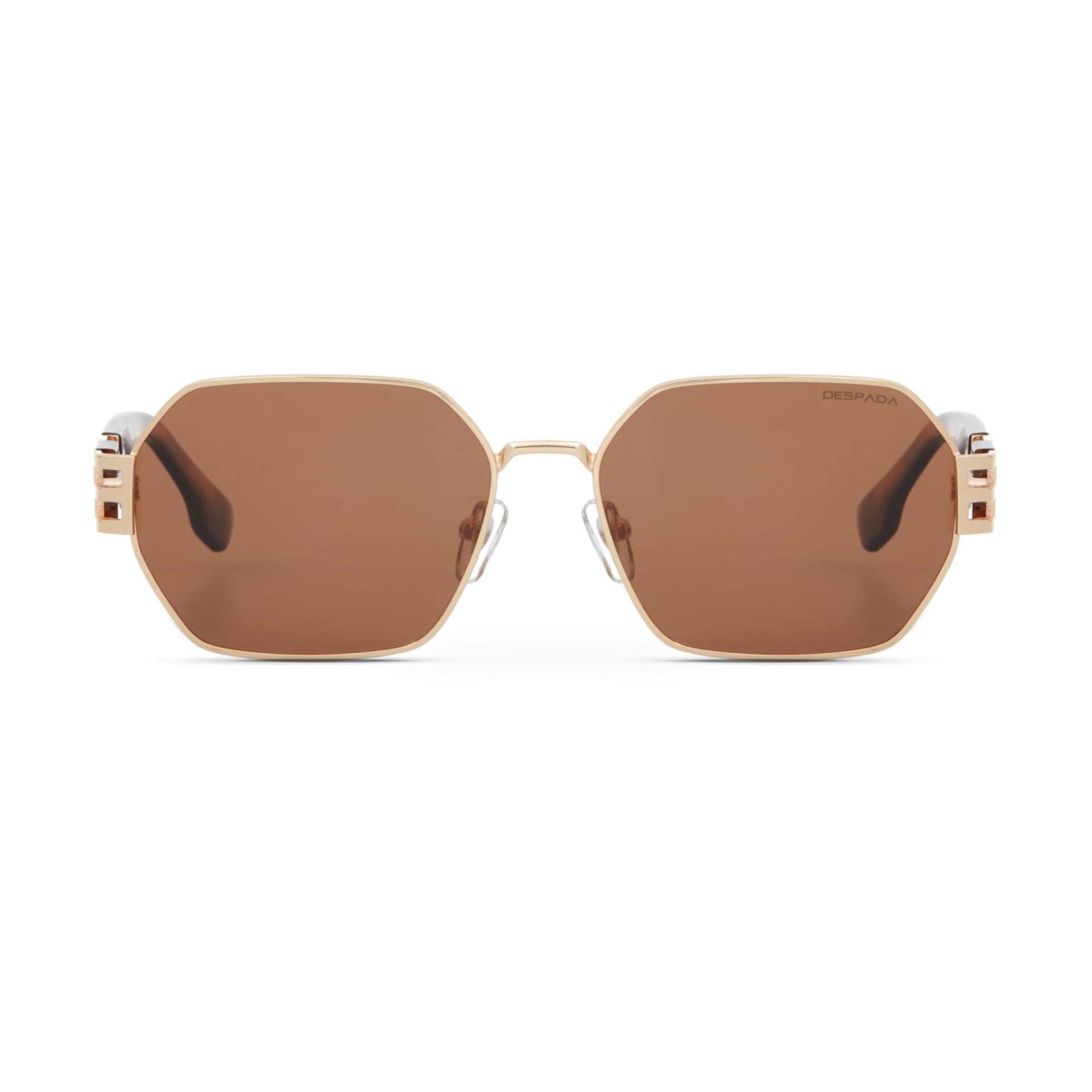 Geometrik hatların ezber bozan cazibesi Despada DS 2348 C 3'te hayat buluyor. Altın rengi metalin gösterişli ışıltısı ve kahverengi camların nostaljik uyumu sayesinde, en sade kıyafetlerinizi bile anında iddialı bir seviyeye taşıyın.