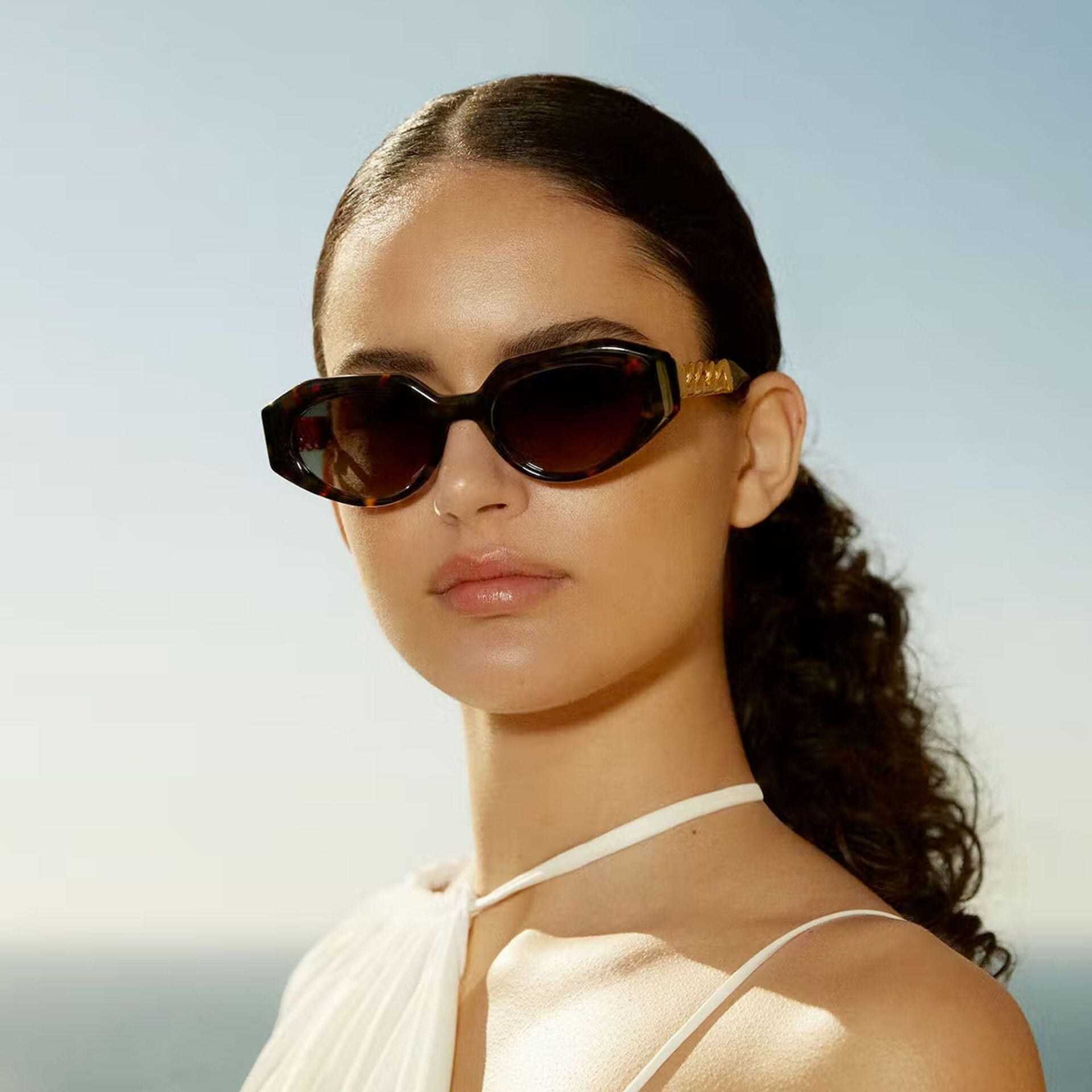 GAIA koleksiyonu, doğal asetattan yapılmış geometrik konturlara sahip kedi gözünden ilham alan bir tasarımdır. Her iki sapı oluşturan LEGACY kapsül koleksiyonunun simgesi olan 6 cm'lik metal zincirin eklenmesi dikkat çekiyor. Maksimum ultraviyole korumasına ve yüksek görsel konfora sahip yüksek kaliteli CR39 lensler.İthalatçı Bilgisi: DOĞAN OPTİK SAN. Ve TİC. LTD. ŞTİ.