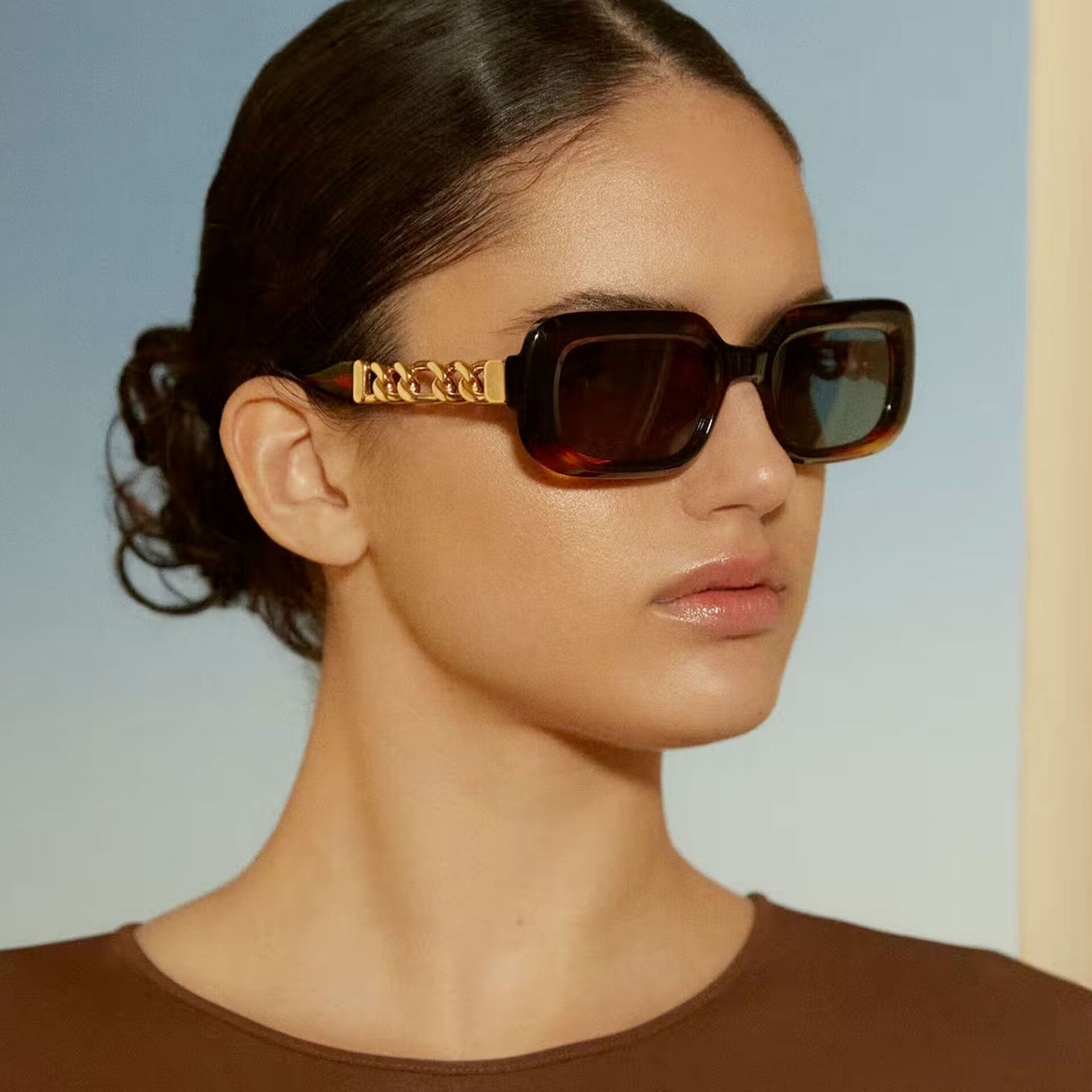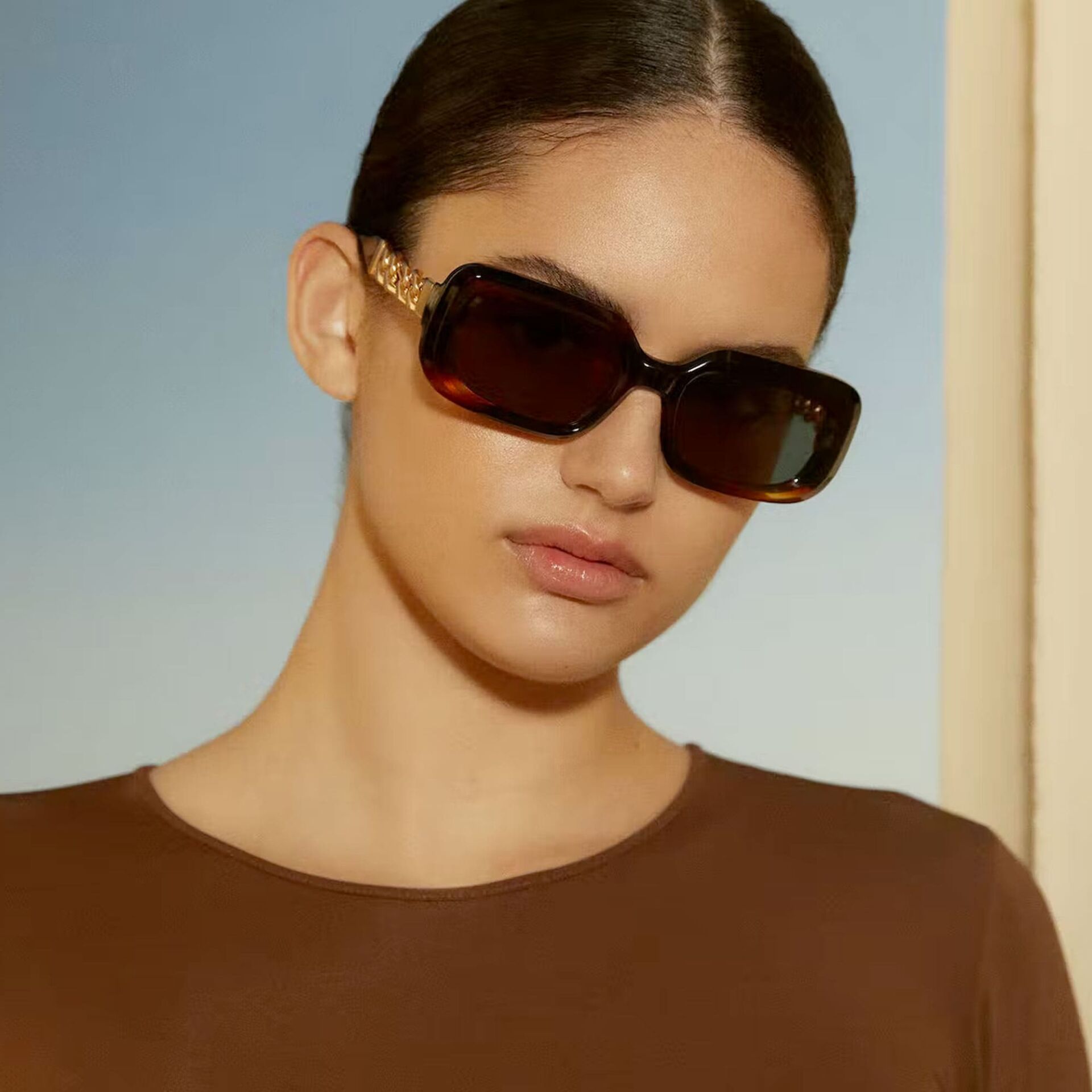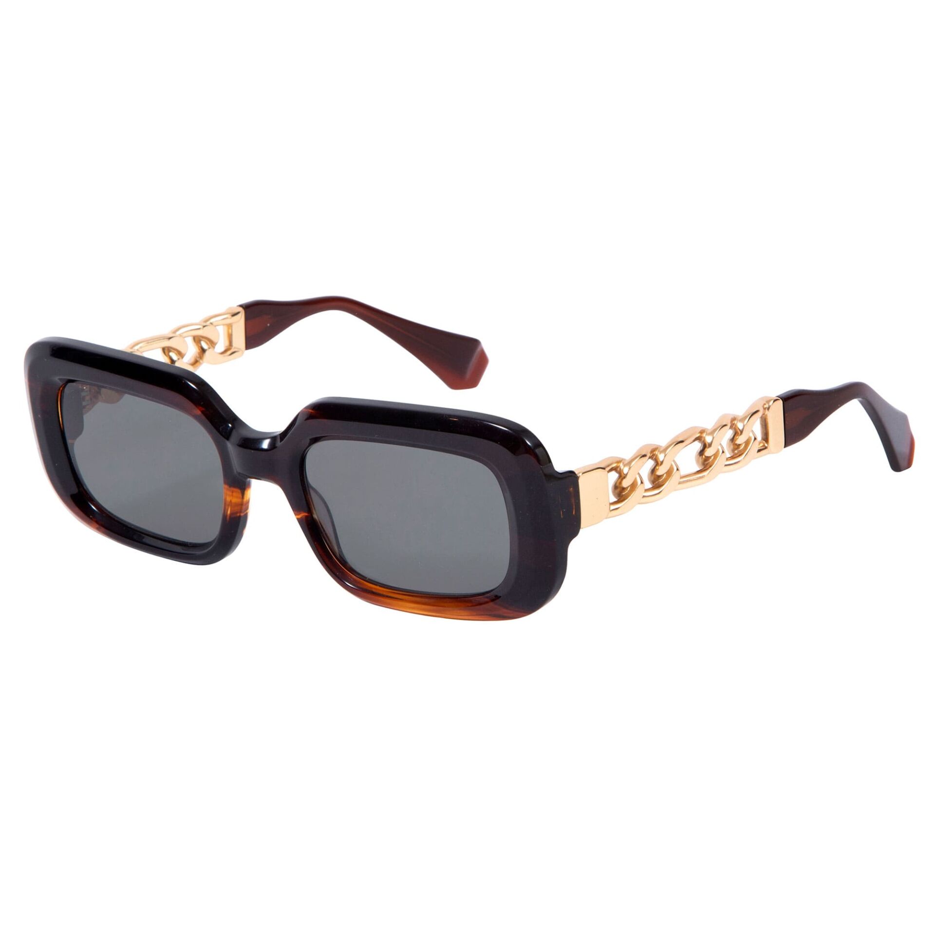 HERA koleksiyonu, doğal asetattan yapılmış, köşeleri yuvarlatılmış dikdörtgen bir tasarımdır. Her iki sapı oluşturan LEGACY kapsül koleksiyonunun simgesi olan 6 cm'lik metal zincirin eklenmesi dikkat çekiyor. Maksimum ultraviyole korumasına ve yüksek görsel konfora sahip yüksek kaliteli CR39 lensler.İthalatçı Bilgisi: DOĞAN OPTİK SAN. Ve TİC. LTD. ŞTİ.