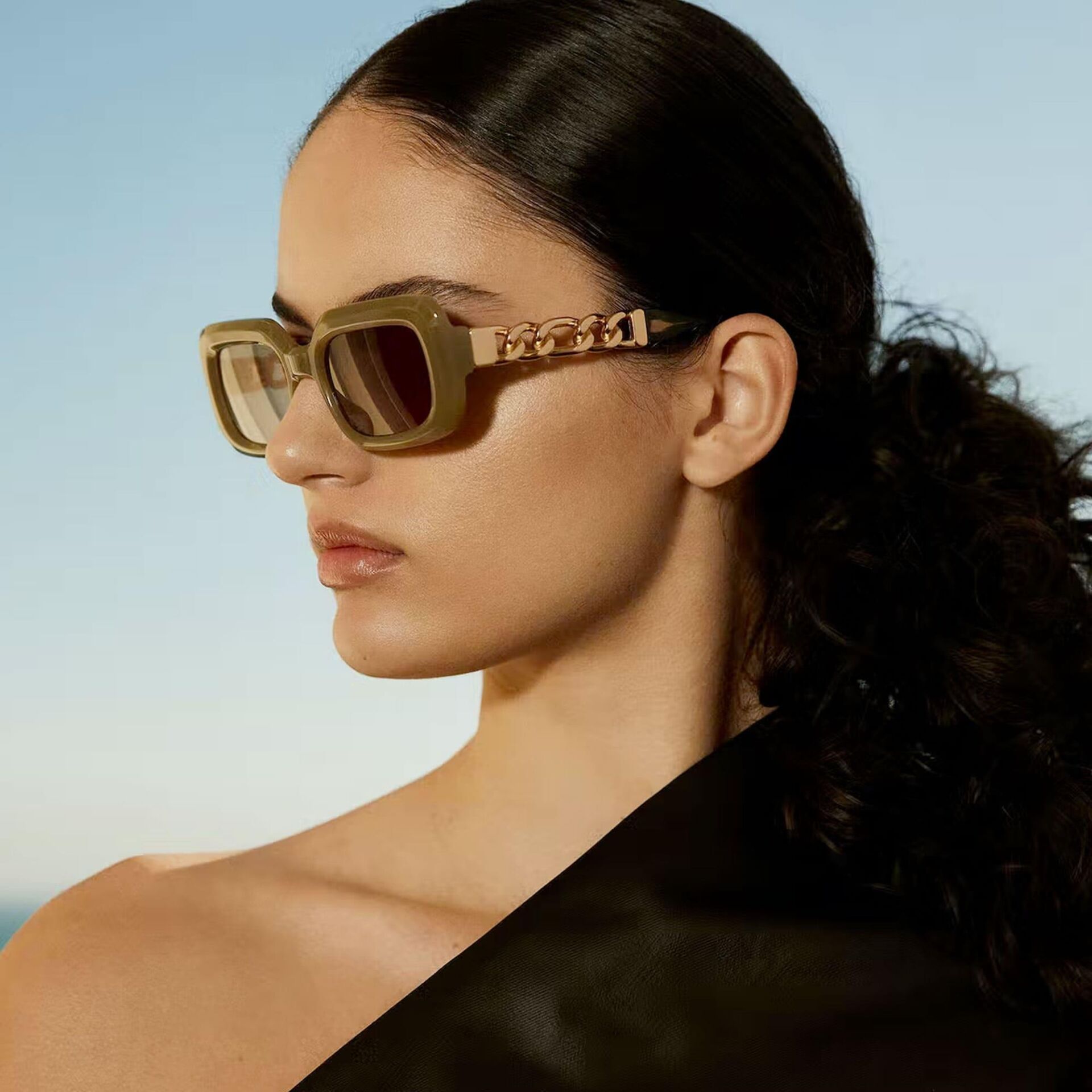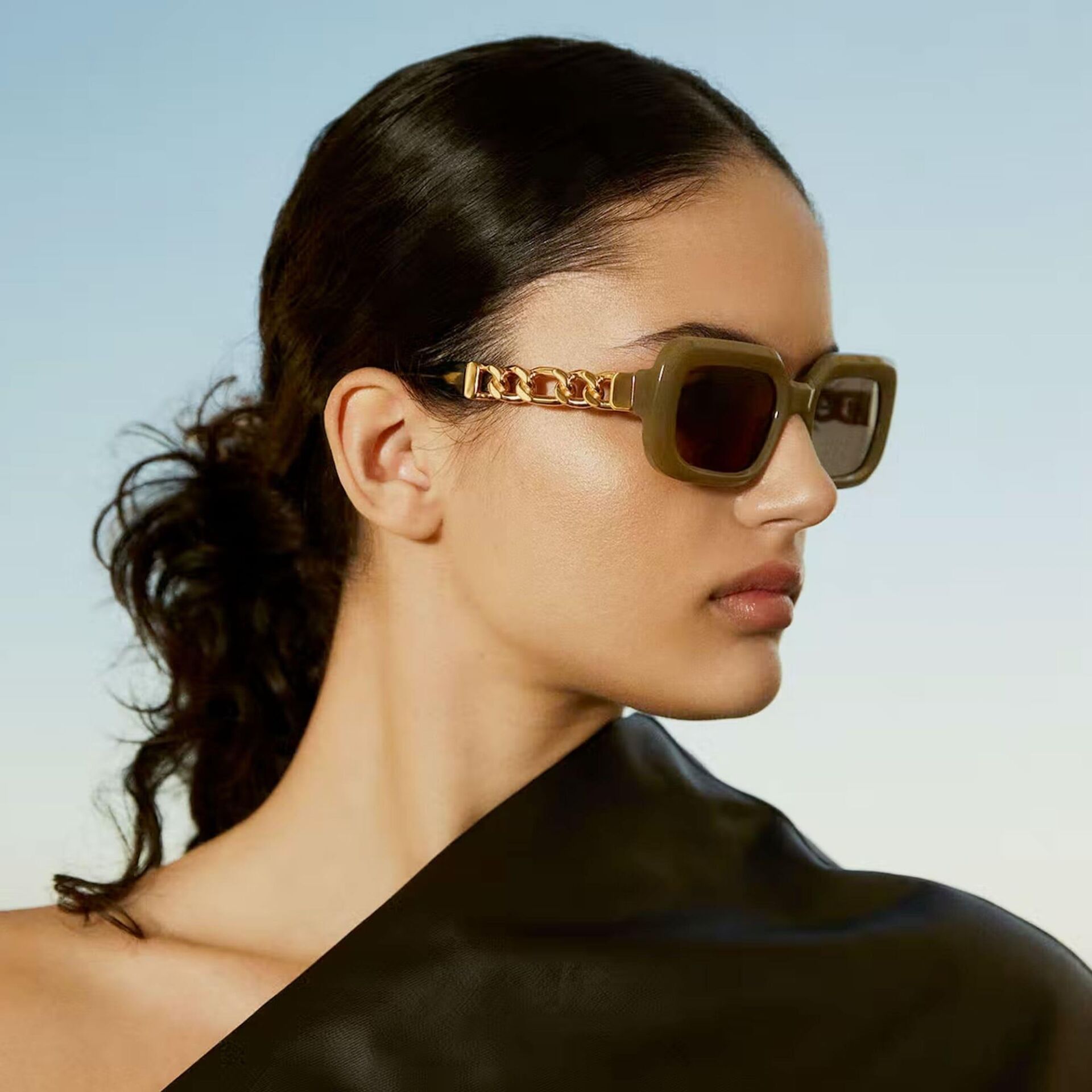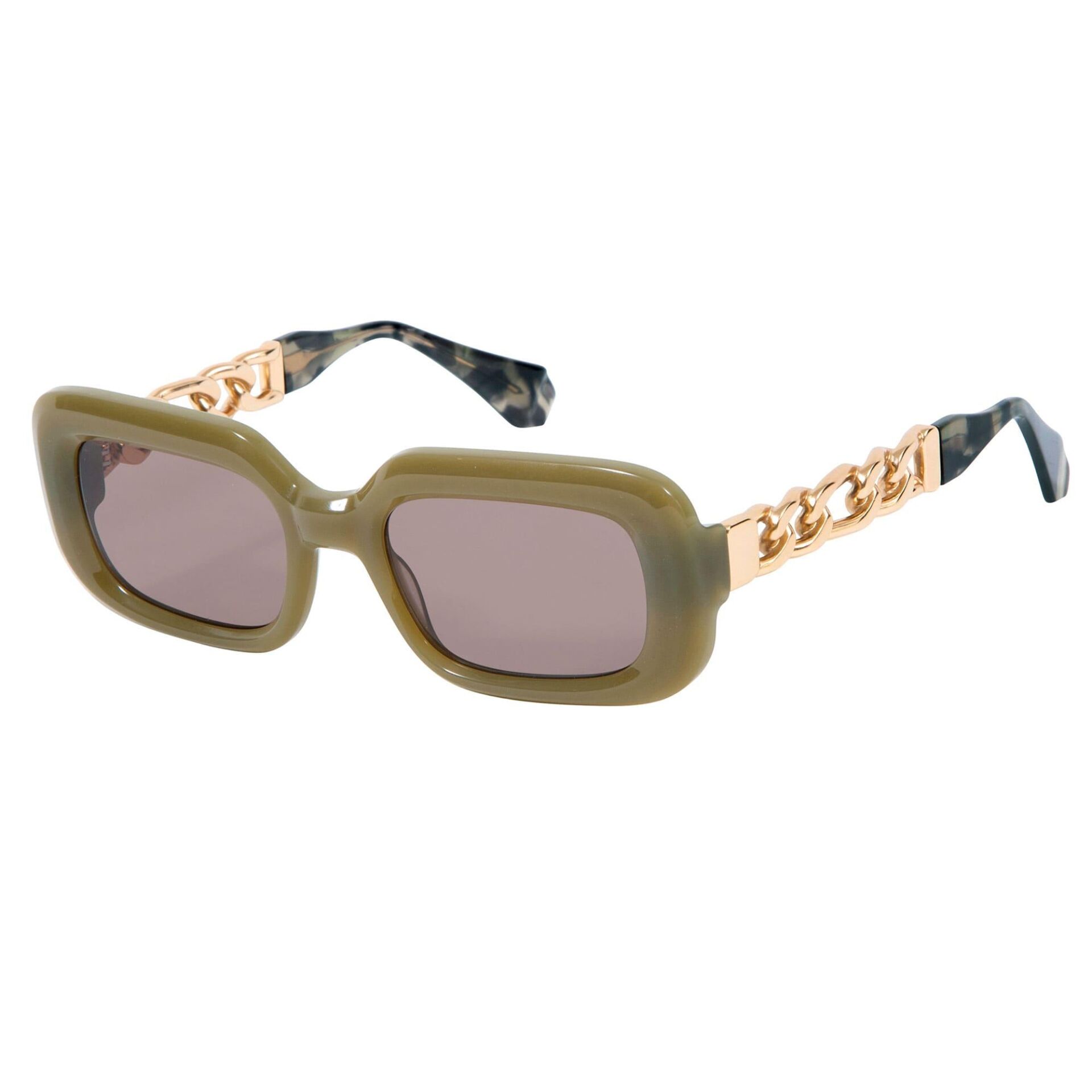 HERA koleksiyonu, doğal asetattan yapılmış, köşeleri yuvarlatılmış dikdörtgen bir tasarımdır. Her iki sapı oluşturan LEGACY kapsül koleksiyonunun simgesi olan 6 cm'lik metal zincirin eklenmesi dikkat çekiyor. Maksimum ultraviyole korumasına ve yüksek görsel konfora sahip yüksek kaliteli CR39 lensler.