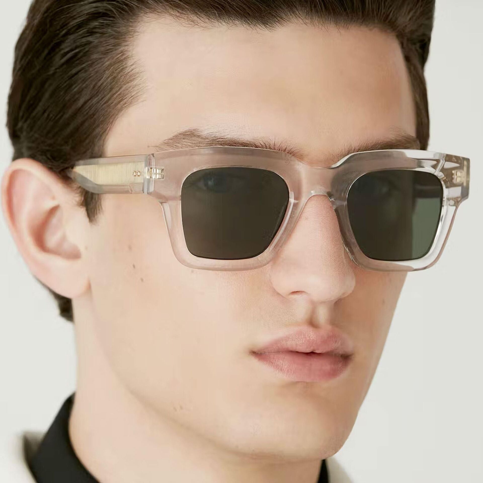 KANT koleksiyonu, kalın, yuvarlak kenarlı, üst kenarı eğimli ve yeni iki pimli metalik süslemeli geniş şakaklı asetat güneş gözlüğü tasarımıdır. Maksimum UV koruması ve yüksek görsel konfora sahip üst düzey CR39 lensler kullanılmıştır.| Cinsiyet | : | Unisex |