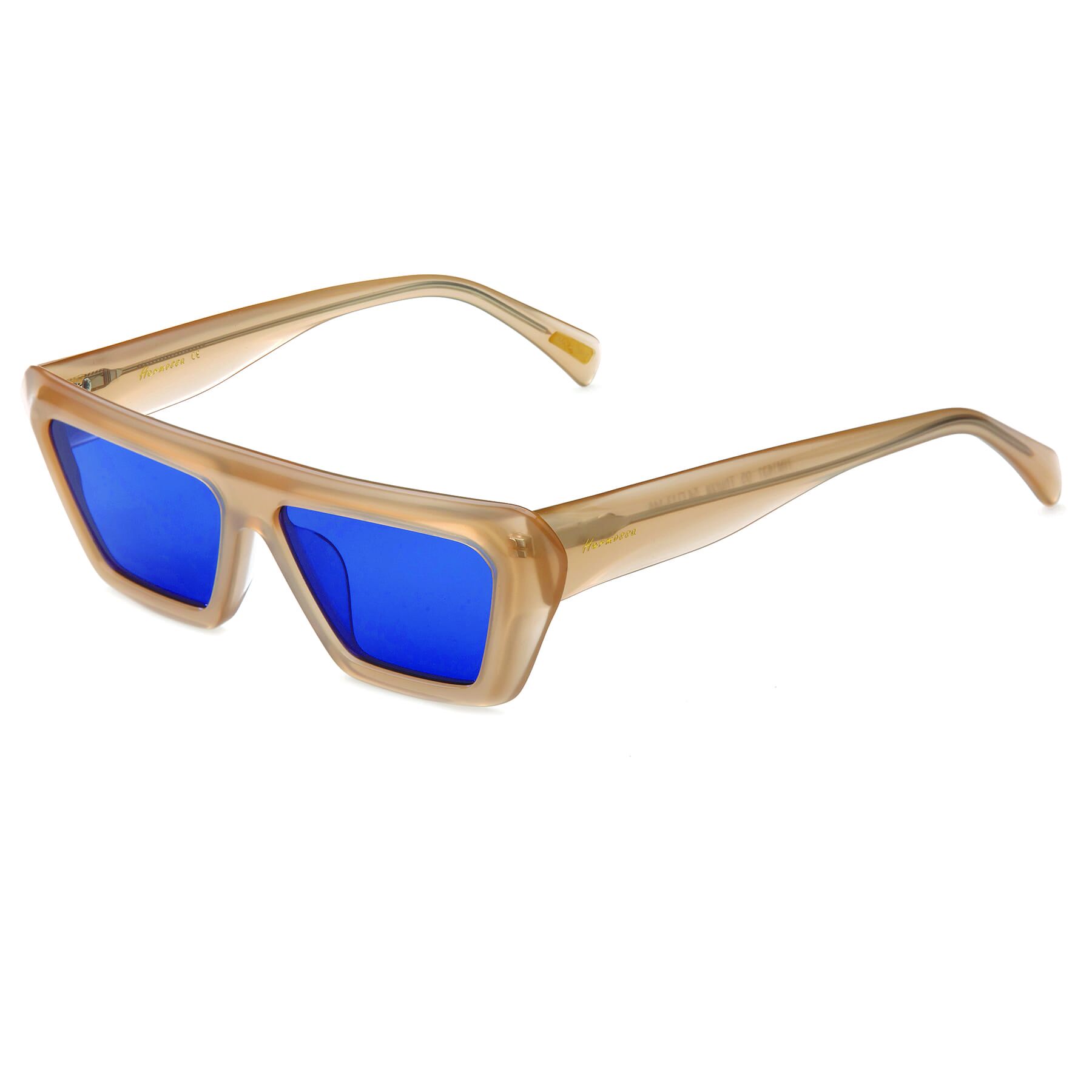 Bej asetat çerçevesiyle özgün bir karakter taşıyan bu model mavi camlı yapısıyla Hermossa'ın tarz anlayışını yansıtıyor. Hermossa HM 1431 C 5, bej asetat dikdörtgen çerçevesiyle sofistike bir güneş gözlüğüdür. Mavi camlarıyla günlük kullanımda hem koruma hem de tarz sunar.Cam: 54 mm · Köprü: 13 mm · Sap: 145 mm