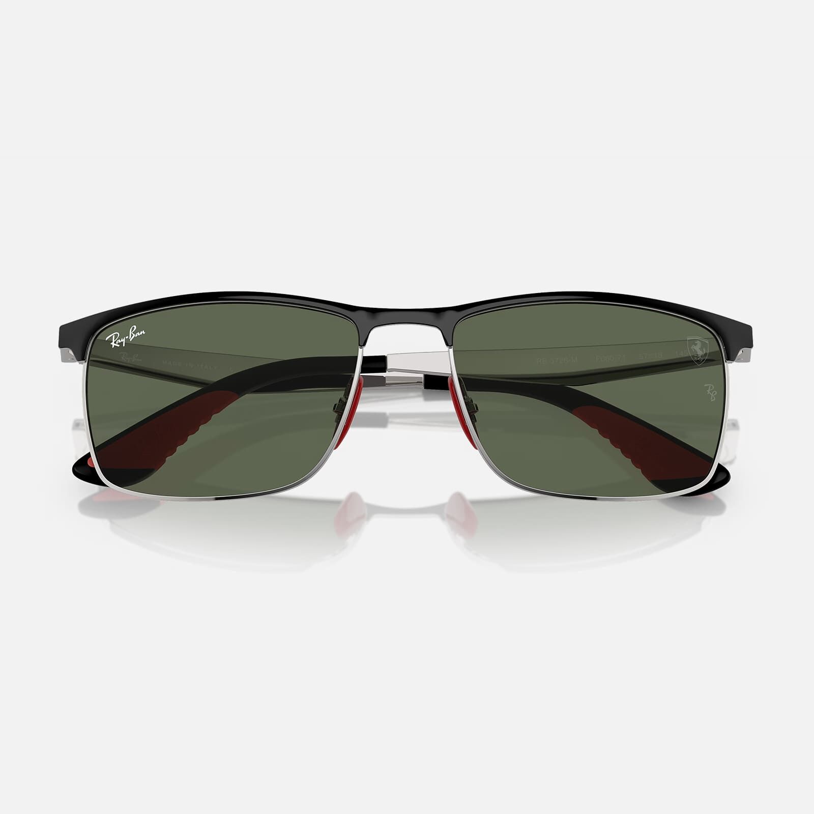 Ray-Ban RB 3726M F06071 57 Erkek Güneş Gözlüğü İkonik F1 yarış ceketlerini anımsatan bu vizyoner modeldeki malzeme ve renk karışımları çarpıcı dikdörtgen bir çerçeve yaratıyor. Metal bir ön çerçeveye ve yeni 3 boyut efektli saplara sahip bu model, hem Ray-Ban hem de Ferrari logolarını taşıyor. Ön kısmı metal, sap uçları kauçuk olan ve yeni bir 3 boyutlu efekte sahip sapları bulunan dikdörtgen çerçeveler. Siyah, gümüş ve tunç rengindeki klasik metal renk gruplarında, kırmızı veya sarı sap uçları ve burun plaketleri bulunmaktadır.Cam: 57 mm · Köprü: 18 mm · Sap: 145 mm
